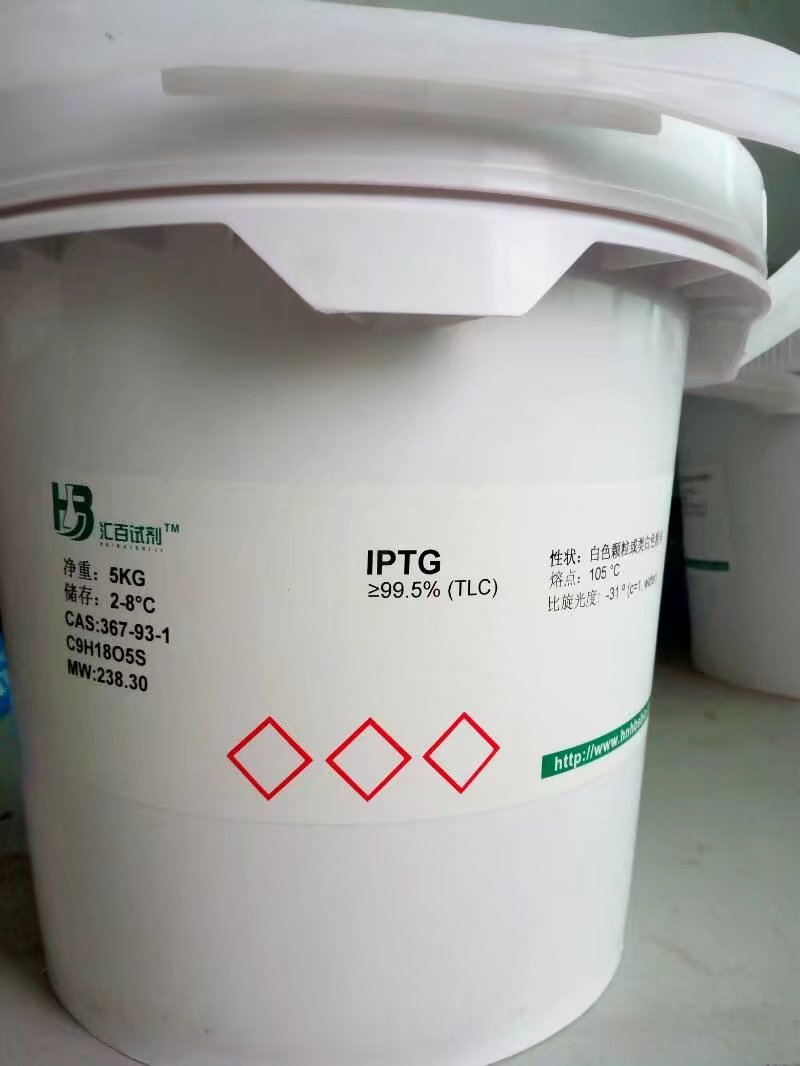 匯百試劑作為國內大型糖苷系列產品生產商,向廣大科研單位供應純度99%~101%的高純度IPTG。經多次會議商討改良,匯百試劑目前完成IPTG【367-93-1】進一步技術純化。目前匯百試劑IPTG擁有工業級,試劑級,醫用級三個級別。