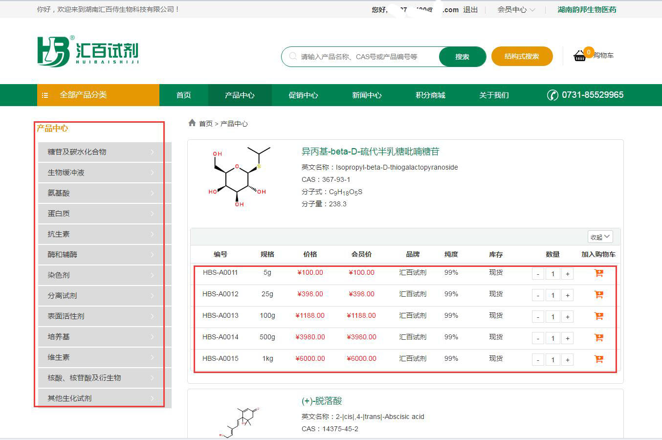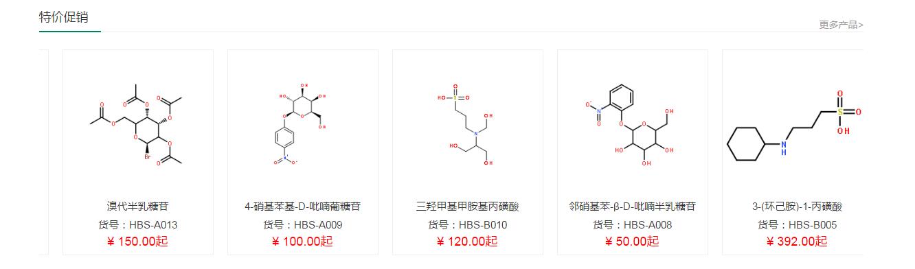 目前我們擁有上千款生化試劑品種,根據產品的不同包裝規格進行定價,價格展示一目了然,用戶可以根據產品名稱或者CAS號進行產品及商品價格查詢。
